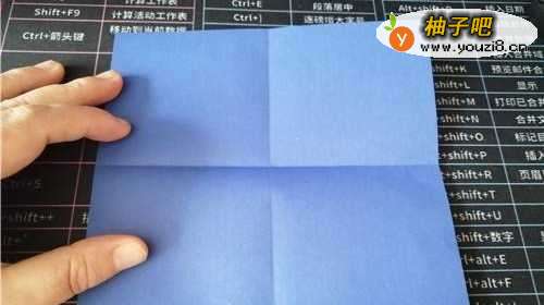 4其他的三条边一样执行,如图一。然后,把彩纸翻面,如图二。