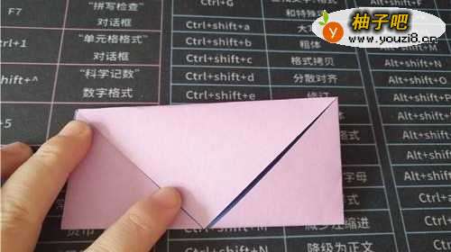 3我们再把彩纸的中线对折,如图一。启用后,把下面的边向着中线对折,如图二。