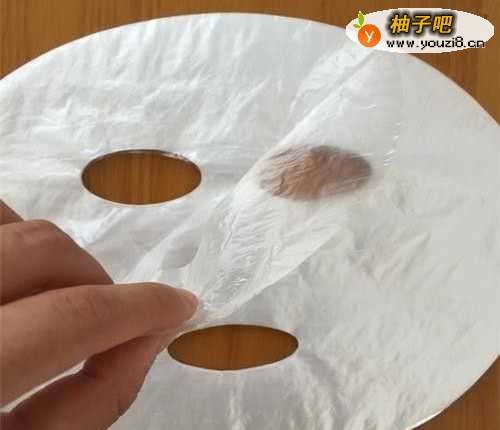 4若不想让酒糟直接沾在脸上,也先将面膜纸洗净贴于脸上,再将先做好的面膜涂于面膜纸上