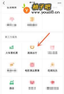 滑动支付页面,在第三方服务找到“滴滴出行”启用。