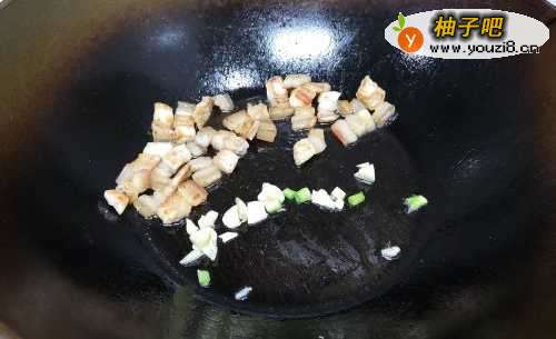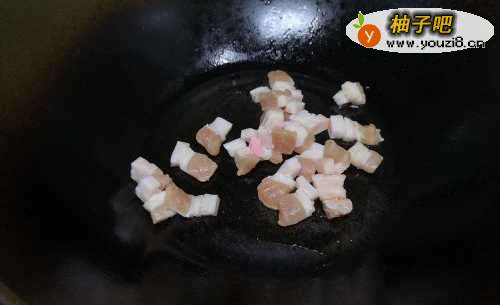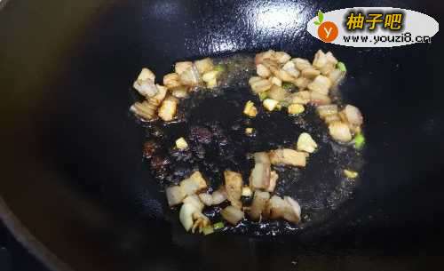 22.热锅,下一点点油,把五花肉放下去转小火煸。
