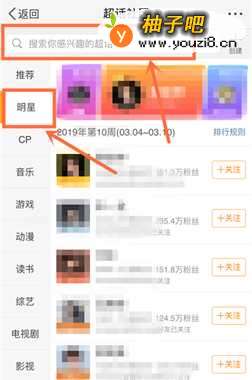 55、推荐下面就是“明星”排行榜,还能在上面搜索你要找的名字,这样就能进入超话聊天了。