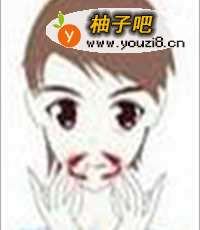 6用双手轮流由下上提拉脸颊皮肤,数次。