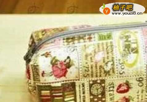 首先用针将四种不同的布料缝合在一起,注意:为了美观看可将印花大一点的布料放最外面,透明布可放在最外面,然后缝上拉链。