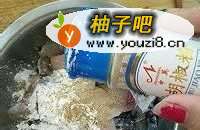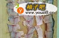 2鱼头剁掉,鱼身从头部横切面片成两片,中间鱼骨剔出。切的时候拿块干净的布子垫在鱼身上以免手滑抓不住。