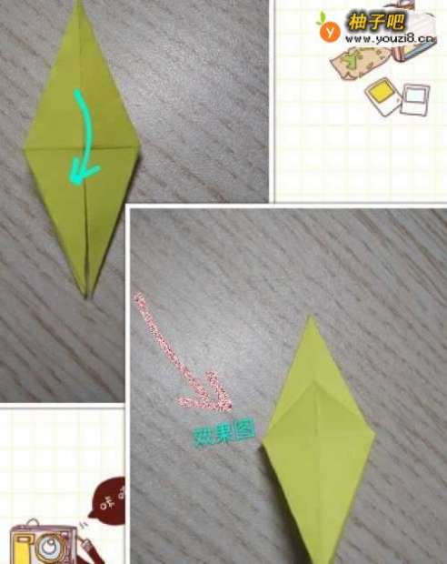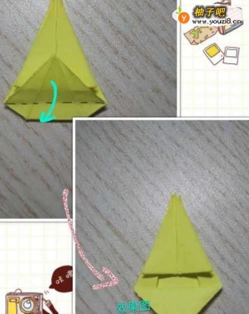 22将底尖角沿所画虚线向上翻折(反面亦同)!效果如下!