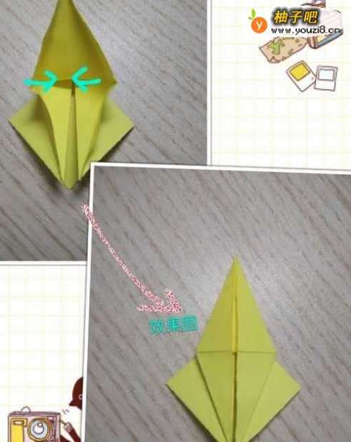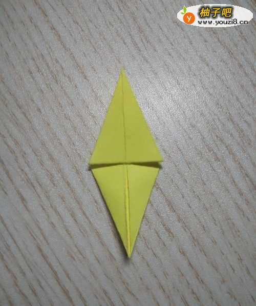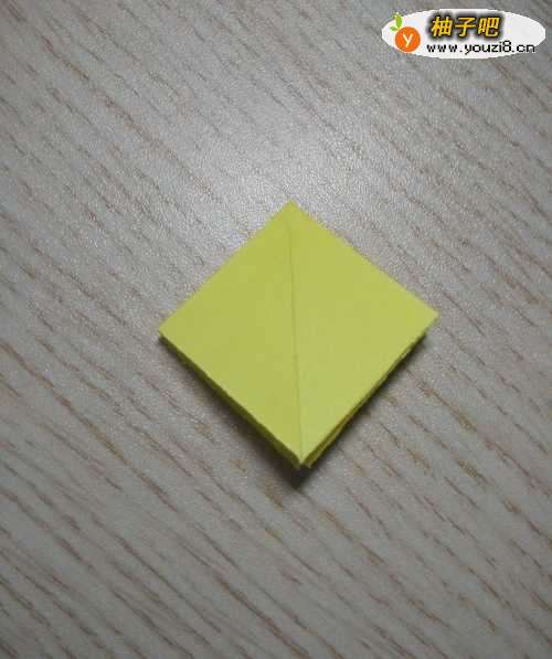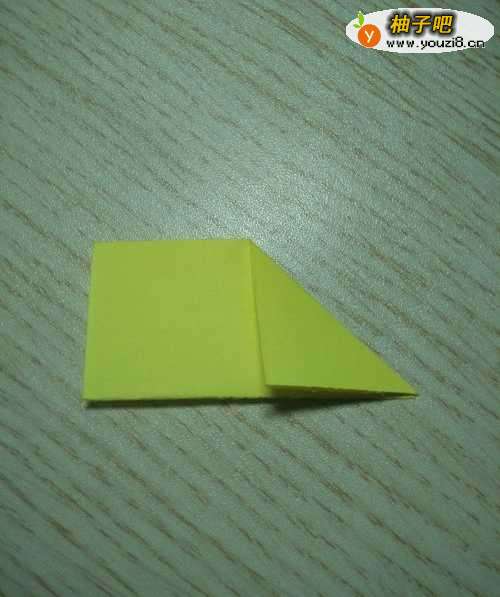6将底尖角的第一层向上拉开,再把左右两边向内折叠,压平!效果如下!