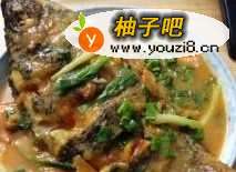 4第四步,锅中留油,放葱姜蒜爆香,放豆瓣酱炒出红油后放鲈鱼,加清水没过鲈鱼