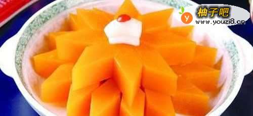 南瓜是β-胡萝卜素的极佳来源,南瓜中的维生素A含量胜过绿色蔬菜,而且富含维生素C、锌、钾和纤维素。中医认为:南瓜性味甘平,有清心醒脑的功效,可治疗头晕、心烦、口渴等阴虚火旺病症。