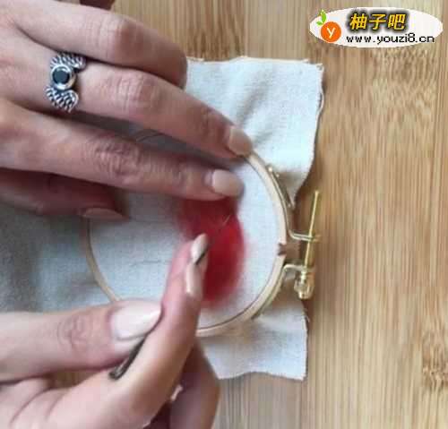 18调整整幅作品型,修整不平整之处,戳针戳均匀平坦