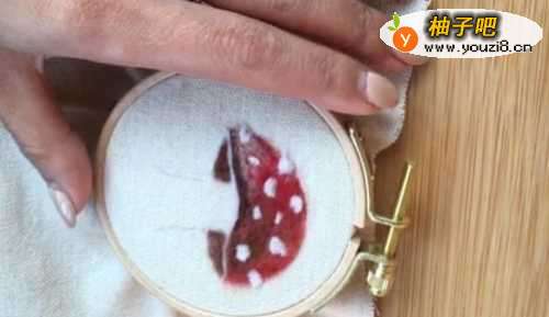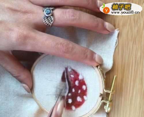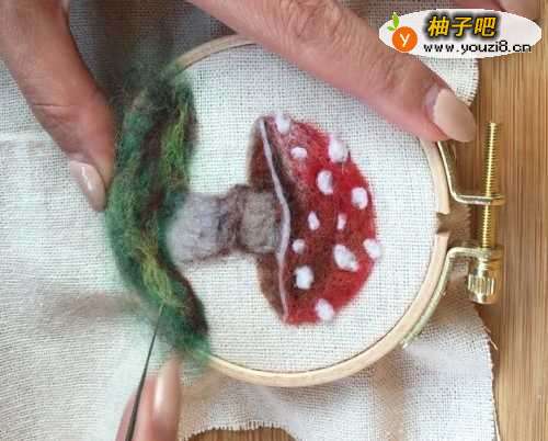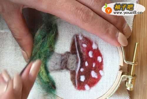 9白色羊毛球点缀蘑菇斑点,戳针稍微固定