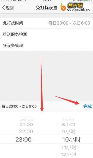 6选择好免消息打扰的时间之后点击完成即可,这样在这段时间内,就不会有推送消息发送进来啦