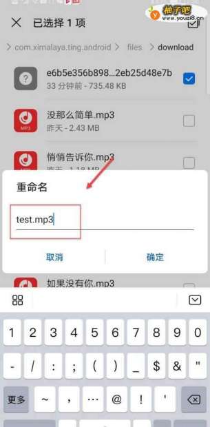 1.开启喜马拉雅,找到音乐文件的储存位置。2.开启手机上的文件管理/内部存储。3.找到该音乐文件,点击更多。4.点击重命名,直接修改为mp3文件。