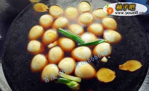 7然后倒入鹌鹑蛋,同时加入适量的酱油,白糖,大料,十三香。