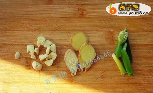 5接下来要准备适量的蒜块,姜片和葱段,如图所示。