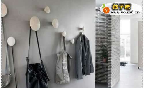 如果墙面位于靠近进门处,也能考虑进行墙面挂钩的选择;如下图的墙面挂钩,能起到画龙点睛的美化效果。在发挥实用价值的同时,也让墙面有了别样的情趣。