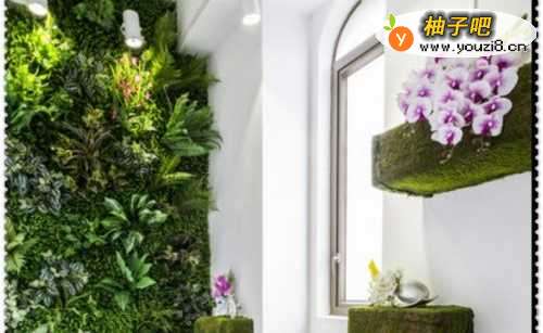 能在阳台、起居室等处选择一面墙,在墙面上安装固定用的钩子、小搁板等,然后根据喜好将整块墙面“种”满绿植,或者放置几盆室内绿植;这样居室就变得生机盎然了。绿植的选择以适合室内养护为主,如绿萝、吊兰等。