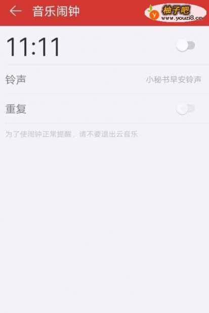 3进入音乐闹钟能看到使用界面,包括闹钟响的时间,播放音乐还有重复的时间选择。下面我们一一来进行使用。