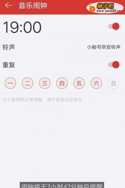 6重复时间也需要进行选择,比如周末想睡懒觉就不要选择响铃了。使用好后退出。