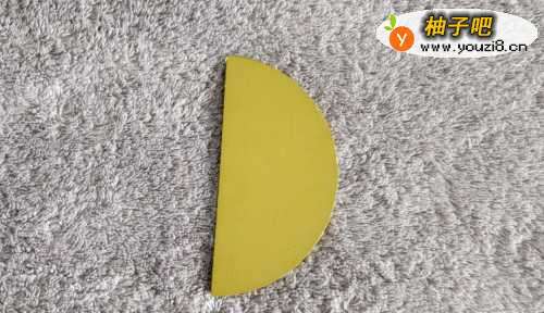 3将黄色半圆弧形在左,放在黄色半圆的左侧叠放,组成一个椭圆,,如图。
