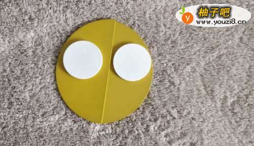 4在它们的上面,放上两个左右间隔的白色圆形,如图。