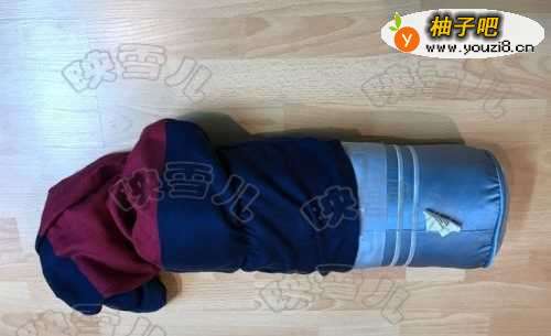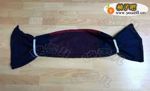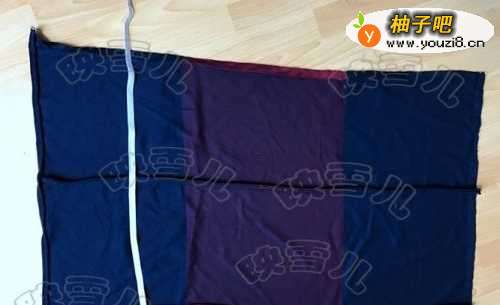 先用面料比对抱枕的大小。面料需要能包裹着抱枕的大小。