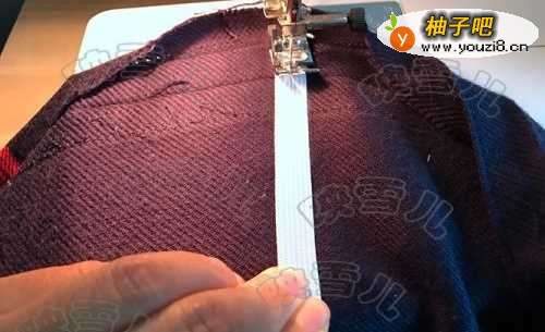 4车缝皮筋时,一定要将皮筋拉开来车。