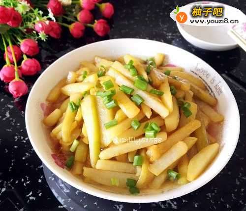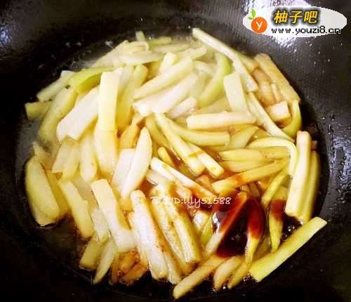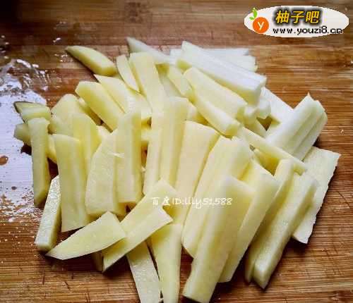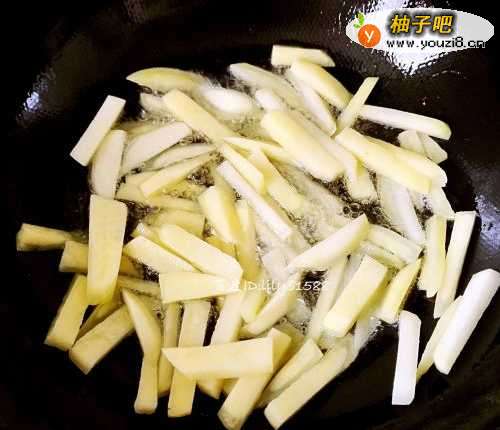 6用炸过茄子的油,接着把土豆放进去炸一下。