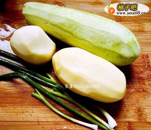 准备好一个茄子,两个土豆和小葱,洗干净备用。