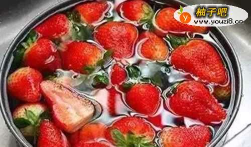 清水里放少量的醋,将草莓浸泡在醋水里,吃的时候再用清水洗一下。超级保鲜哦。