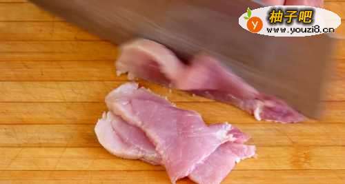 22.把猪肉切成像筷子粗细的丝。