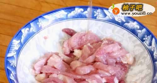 33.把酱油,料酒放在肉丝内,抓匀,在加入淀粉抓匀,最后淋入少许油抓匀,料酒能去除猪肉的腥味,淀粉能使肉丝炒制后口感滑嫩,不柴。