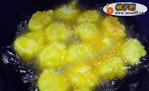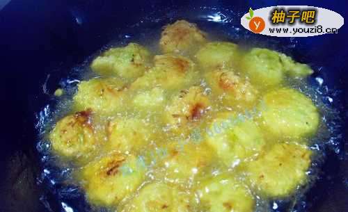 7像这样多挤一些放进锅里,你能看见一个一个金黄的大丸子。