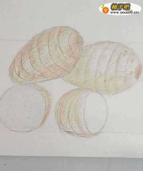 4第四步 再画上这组图的第三部分 半个芋头 这个果肉是白茬的