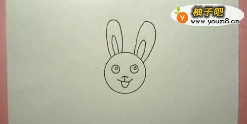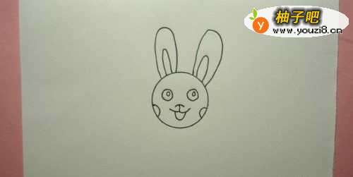 5然后,在圆形外部,用钢笔画出调皮的小白兔的耳朵出来,左右两边的画的耳朵要对称,这样才好看,如下图所示。