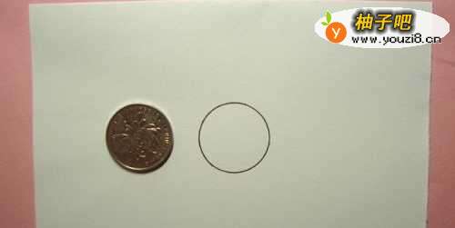 用钢笔在白纸上,沿着硬币的边缘画出一个圆形出来,如下图所示。