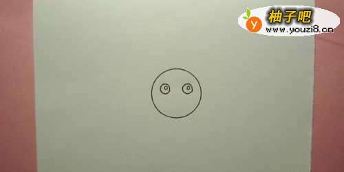 2接着,在圆形内部,用钢笔画出调皮的小白兔的眼睛的部分出来,要注意画的位置在圆的一半位置上,如下图所示。