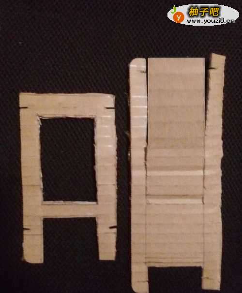 6最后将A,B两个轮廓按照2--7,8--1, 5--4, 3--6卡扣对接,并调整好最终形态即可得到如图沙滩椅。做的有点粗糙,由于剪刀不怎么锋利,呵呵!