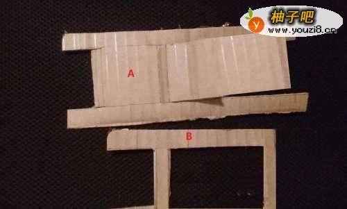 3然后按照线路使用剪刀或者裁纸刀将其A,B两个的轮廓裁剪出来,如图: