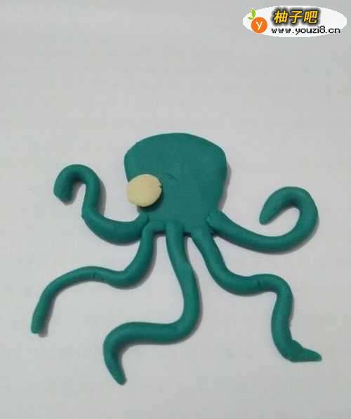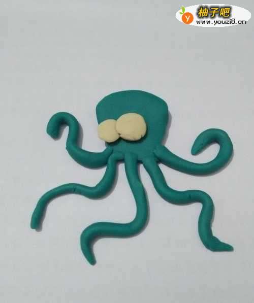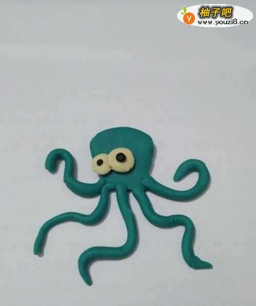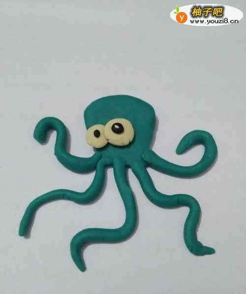 9再用白色团一个细小的球,粘在右边眼睛上面,当作眼中的光。章鱼就做完了。