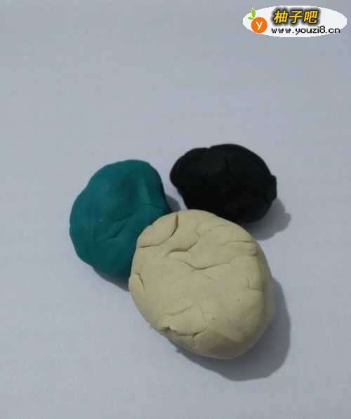 6用白色团一个白球,再按成扁片,粘在身体的左侧,当作眼睛。