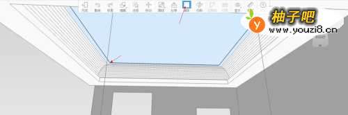 选择自定义吊顶点击设计区域进入自定义设计界面,用画线工具画出顶部轮廓,(可以直接用方形画线工具完成)