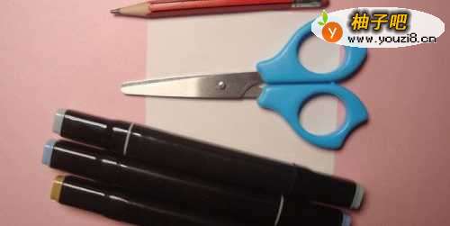 准备好,制作汤锅图形剪纸手工的材料和工具,有白纸、正方形卡纸、马克笔、铅笔,剪刀,如下图所示。