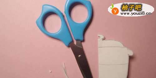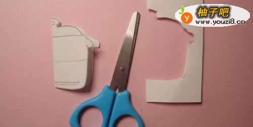 3然后,把白纸上汤锅的轮廓图形,用剪刀慢慢的剪出来,摆放在桌子上,如下图所示。