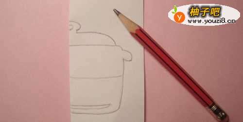 2接着,把正方形卡纸对折一半。并用铅笔在白纸上,画出汤锅图形,根据对称图形,这里画出半个图形,如下图所示。