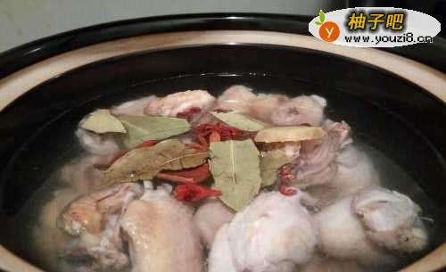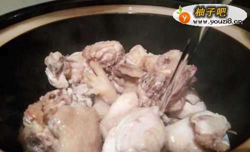 4焯水过的鸡块,清水洗一下,放入砂锅,倒入足够的水,
