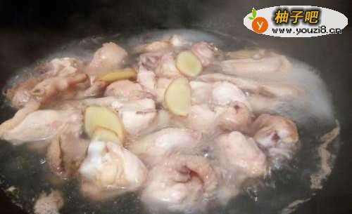 3三黄鸡凉水上锅,生姜片,料酒焯水5分