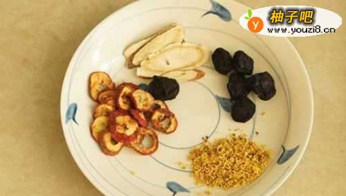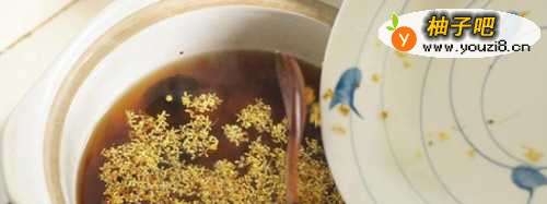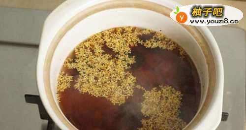 7起锅的10分钟左右放进桂花。加上冰糖一起煮融化即可