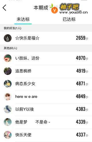 8再向下就是”本组本期成员榜“,此处介绍的是你今天所参加小组的所有成员情况。标出了目前已达标和未达标人数、具体成员情况,未达标的还标出了当前已完成的步数。