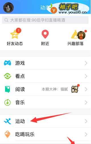 首先是进入QQ5000步运动奖金赛页面。打开手机QQ,点击软件右下角(箭头)指示位置的“动态”,进入动态页面,然后点击下方的“运动”。